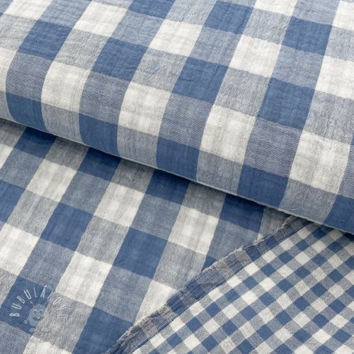 Dvojitá gázovina/mušelín Double sided CHECKS MINI indigo