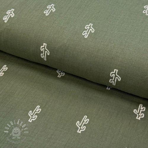 Dvojitá gázovina/mušelín EMBROIDERY Cactus green