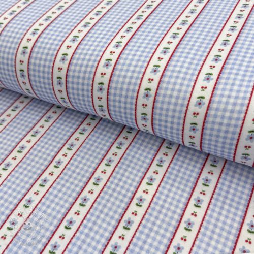 Dvojitá gázovina/mušelín Flowers check blue digital print