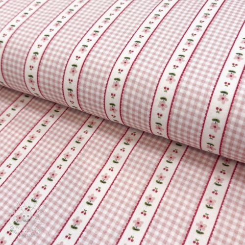 Dvojitá gázovina/mušelín Flowers check pink digital print
