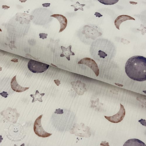 Dvojitá gázovina/mušelín Moon white digital print ORGANIC
